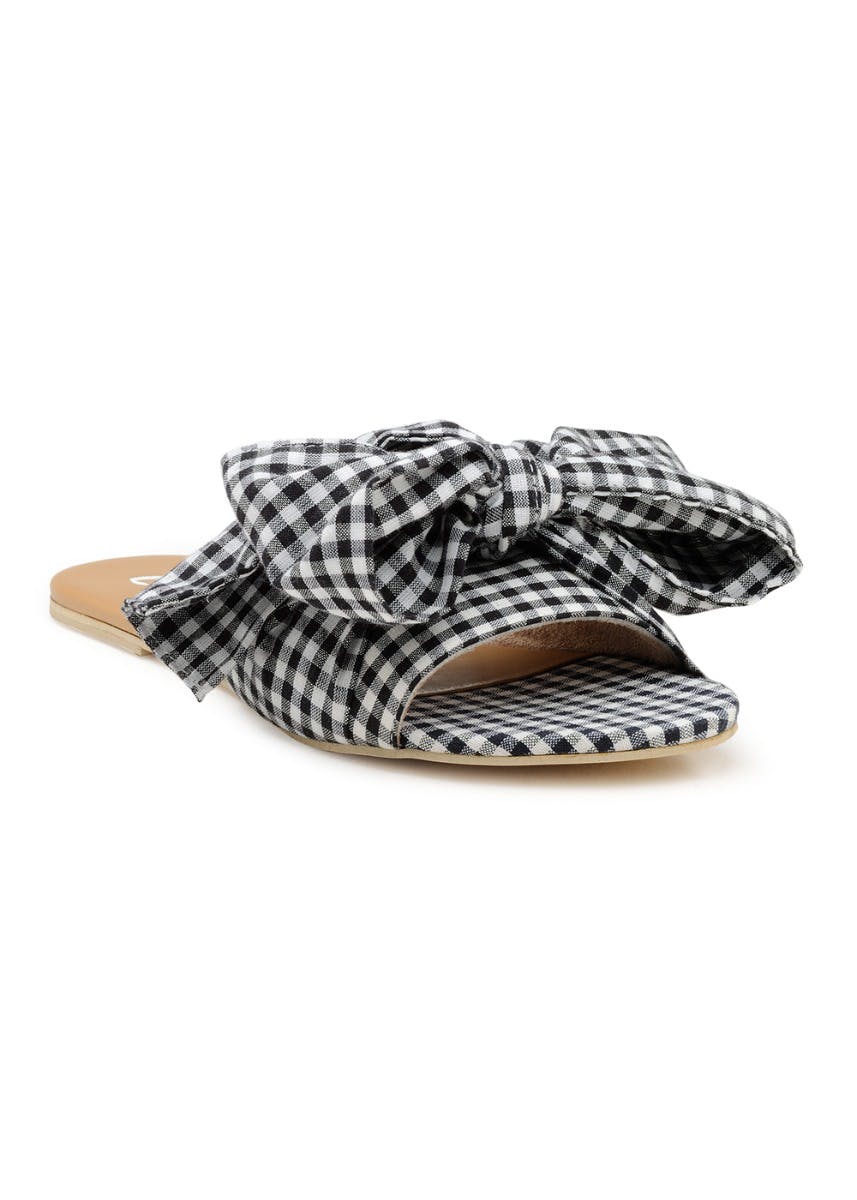 Bow Knot Detail Monochrome Slides checkered slides