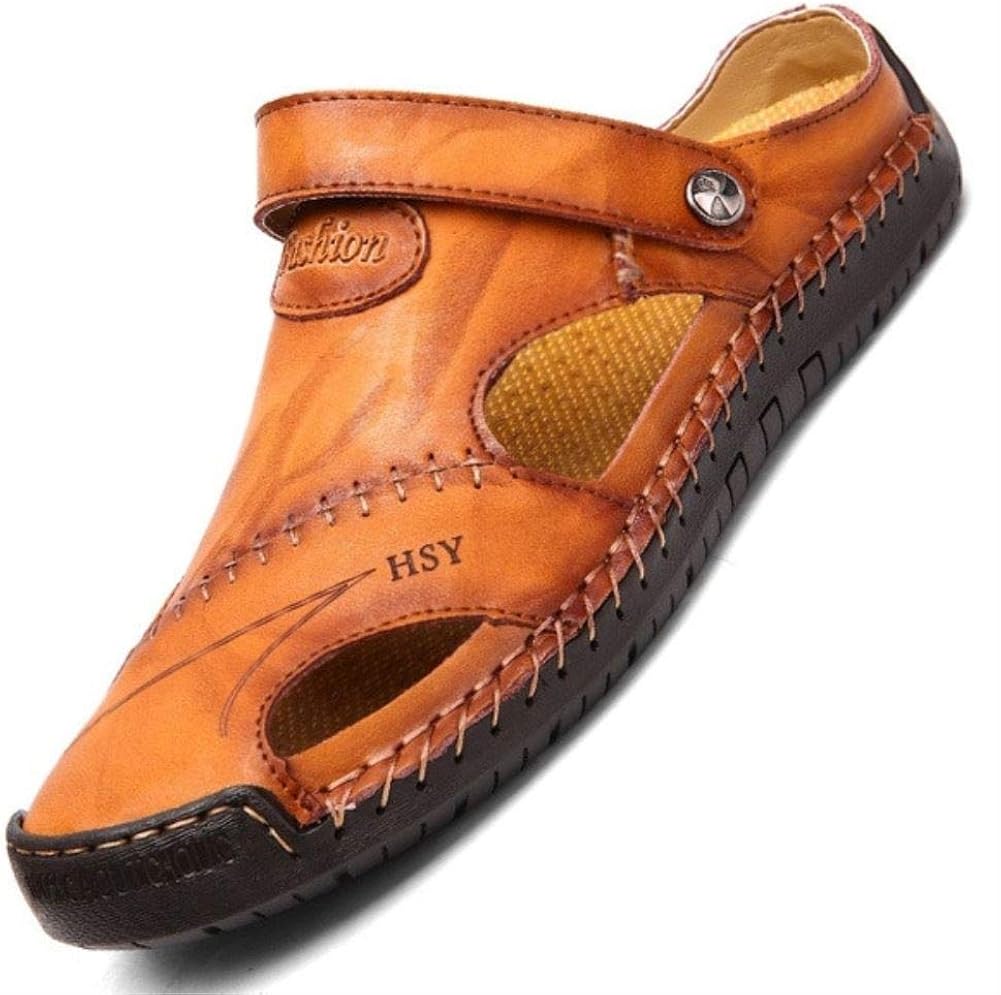 Soft Outdoor Closed Toe Leather Sandals menico men hand stitching soft outdoor closed toe leather sandals