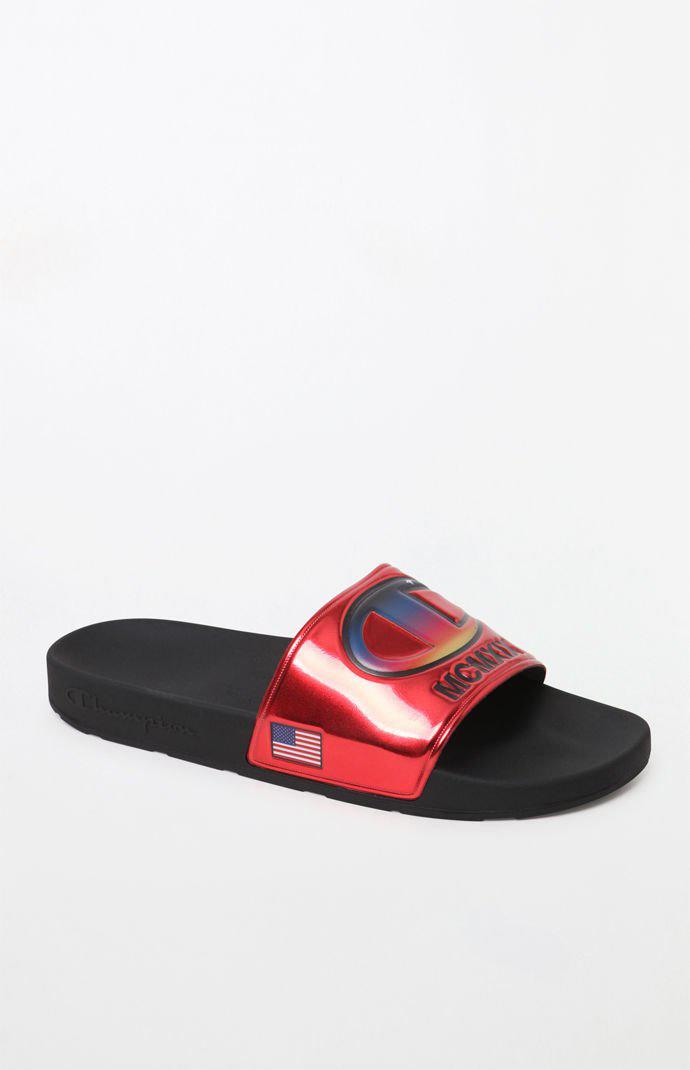 Champion Ipo Metallic Red Slide Sandals red champion sandals