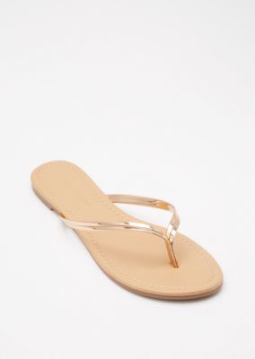Faux Leather Flip Flops Rose Gold gold leather flip flops