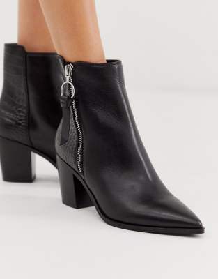 ALDO Croc Print Mix Leather Mid Heel croc print heeled boots