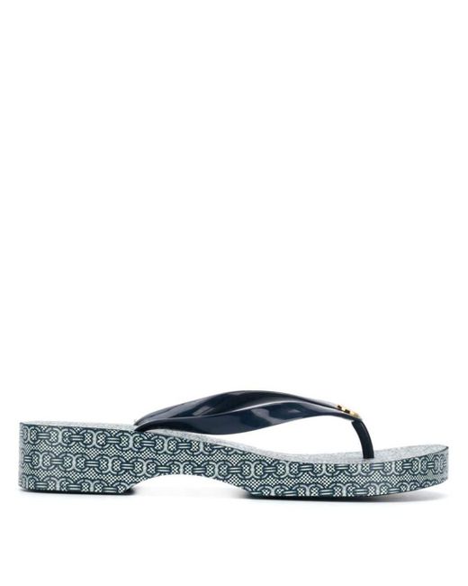 Printed Carved Wedge Flip-flop in Blue tory burch printed flip flops