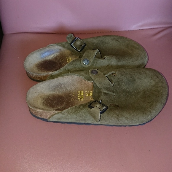 Boston Green Suede Clogs Preowned birkenstock boston green