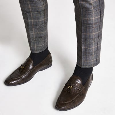 Dark brown croc tassel loafers | River brown croc loafers