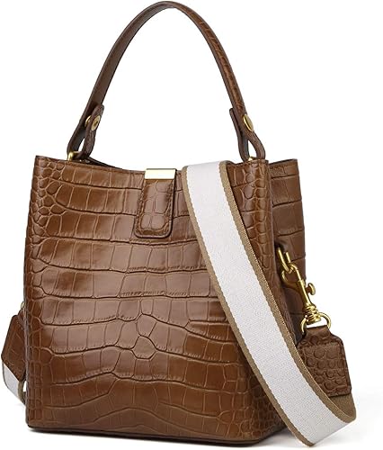 FOXER Women Leather Handbags Designer brown croc handbag