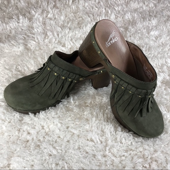 dansko fringe clogs