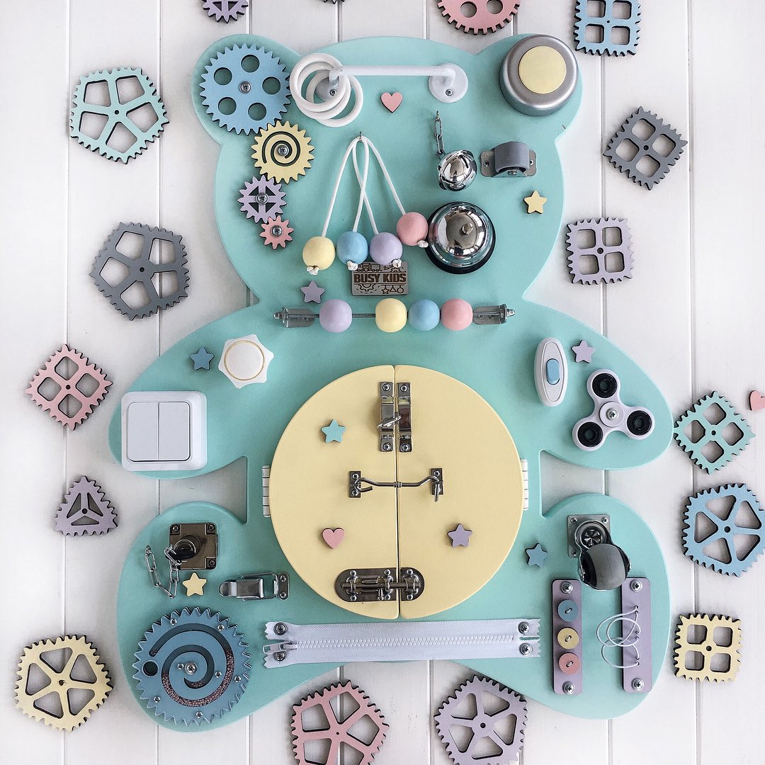 Bear Handmade Wooden Busy Board locks and latches activity board