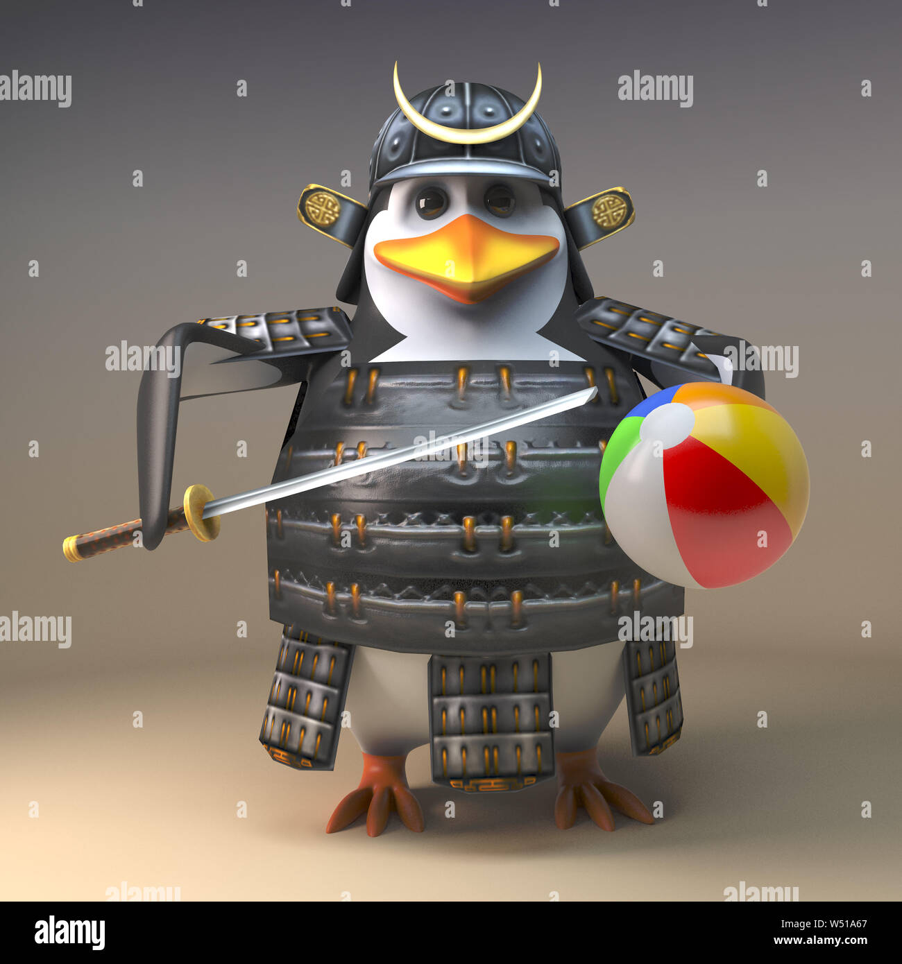 Penguin warrior samurai character in 3d penguin beach ball